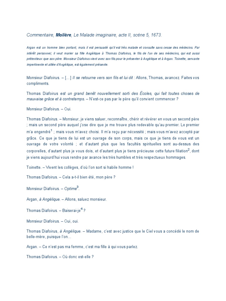 Commentaire moliere le malade imaginaire acte ii scene - fr.scribd.com